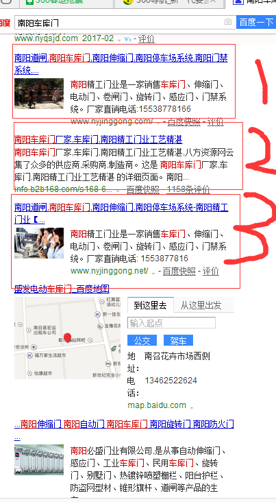 例如:在百度輸入 南陽車庫門 會出現(xiàn)4條排名都是 南陽精工門業(yè)