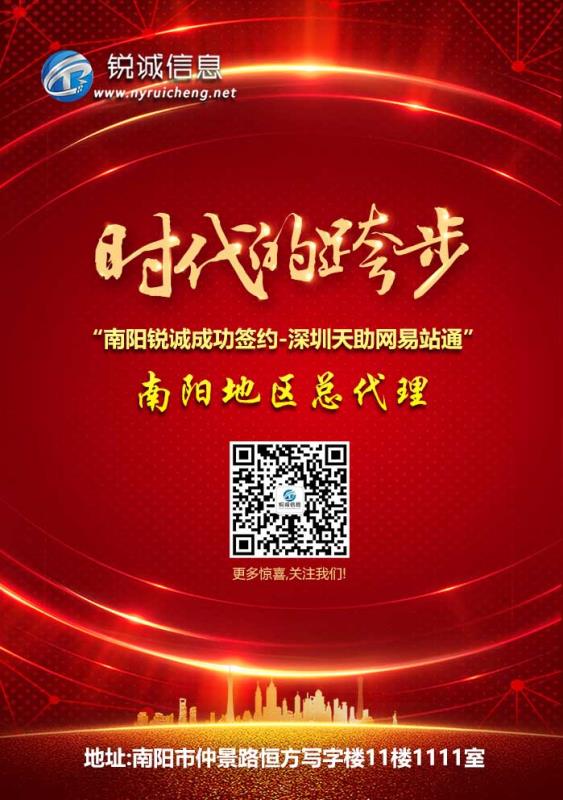 南陽銳誠成功簽約深圳天助網(wǎng)易站通南陽地區(qū)總代理,為實現(xiàn)公司的目標又前進了一大步。
